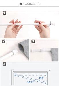 There are two pieces of Velcro, one of which can be affixed to the door frame, and the other one can be sewn on the cloth curtain and stuck.